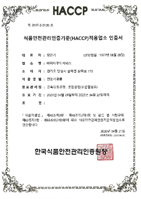 HACCP ÀüºÐ°¡°øÇ°