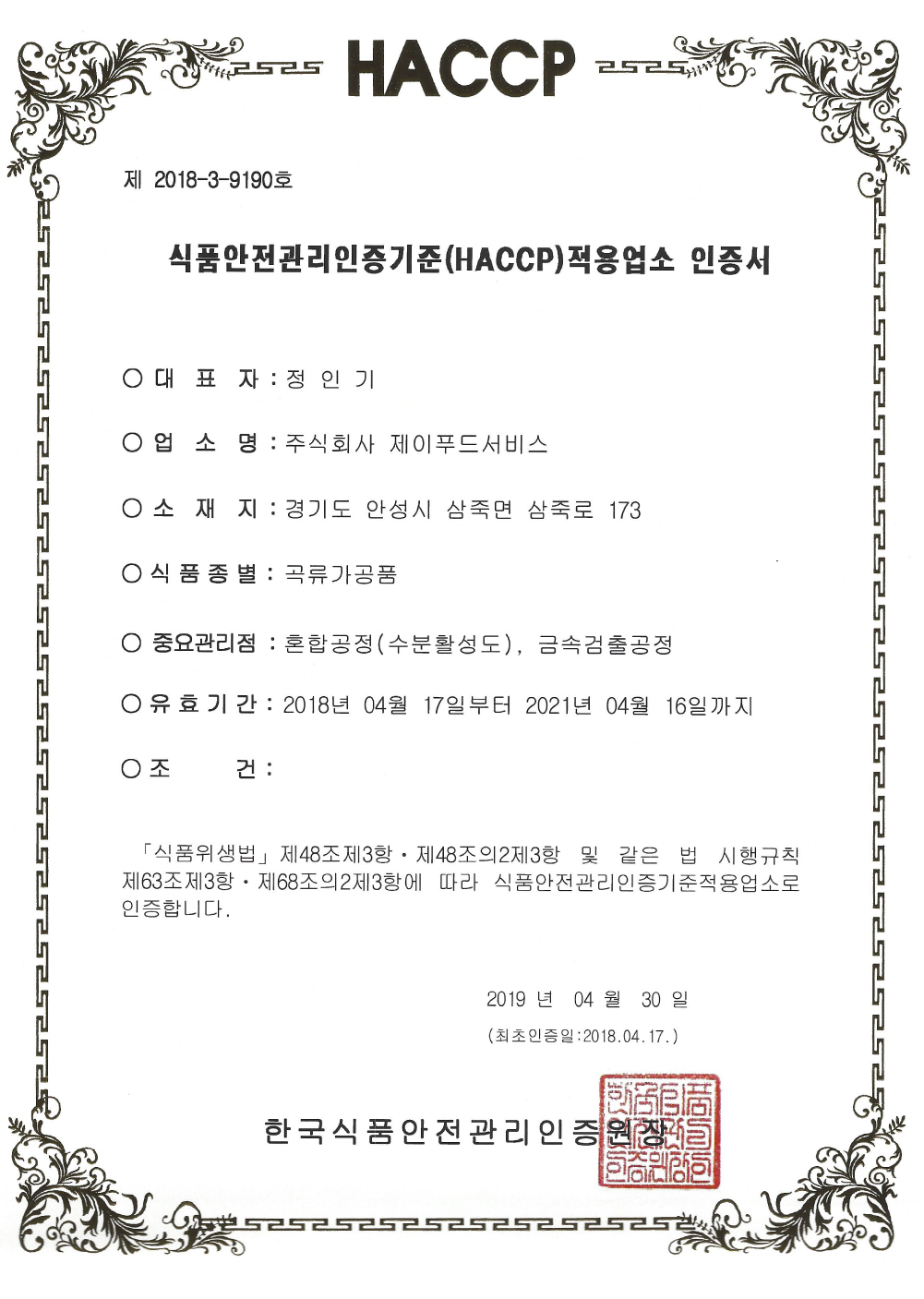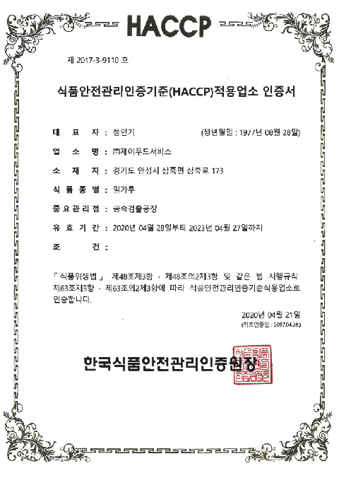 HACCP ÀüºÐ°¡°øÇ°